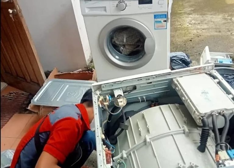 Perbaikan mesin cuci yang mengalami kerusakan seperti tidak berputar atau kerusakan lainya.
